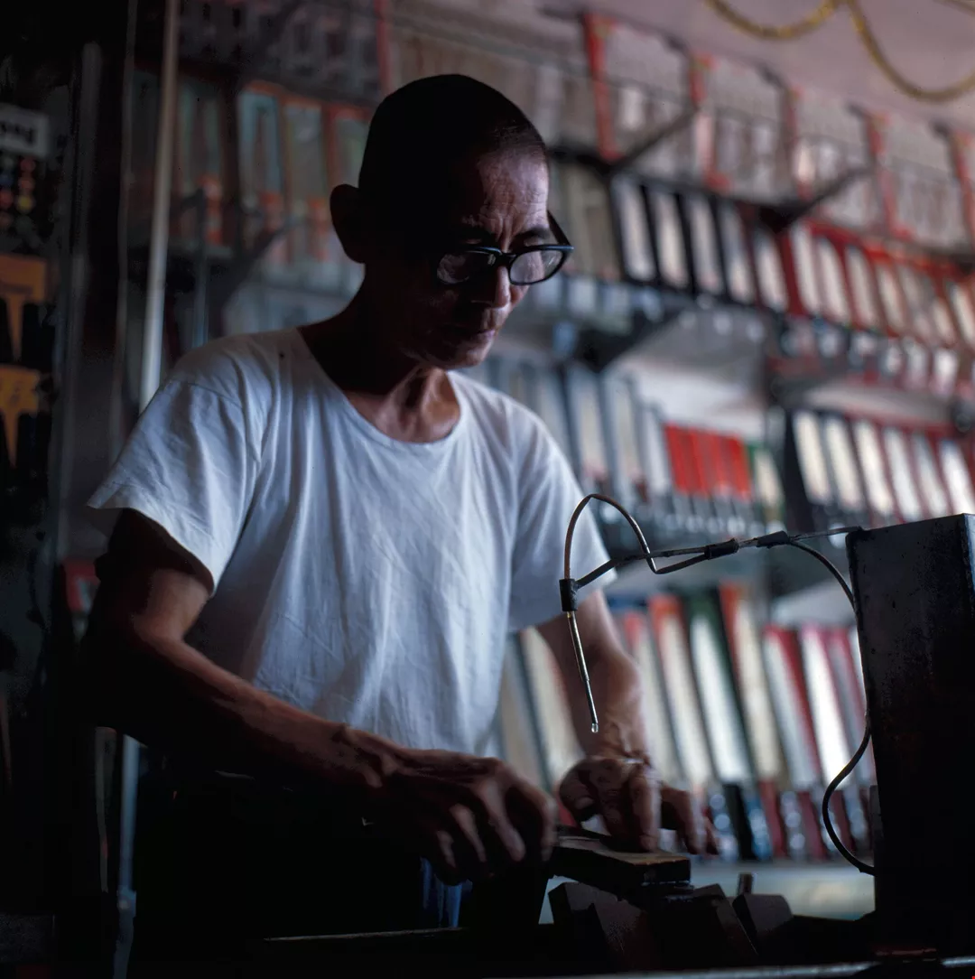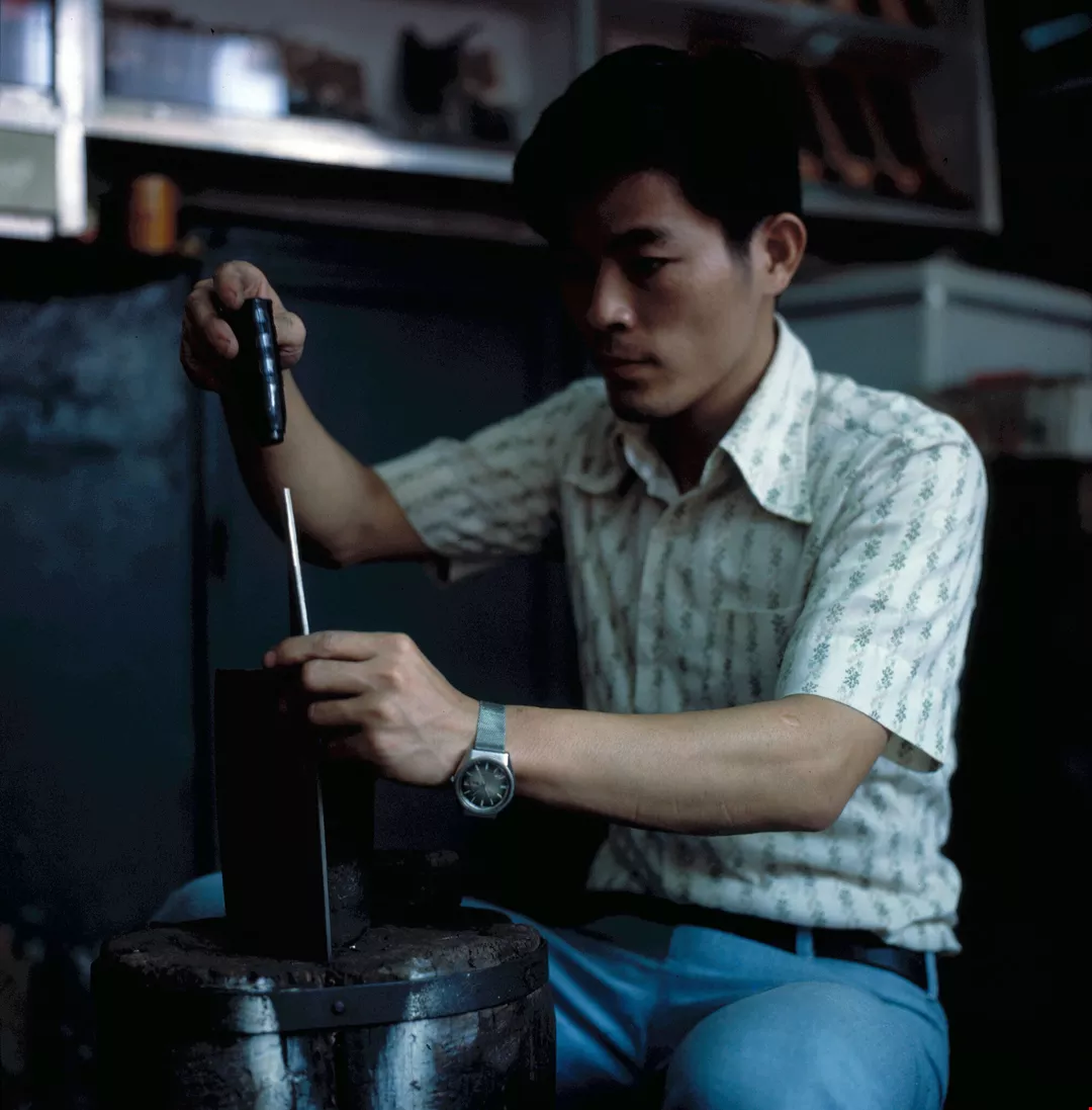 As a guarantee of quality, each knife is stamped with the Shihlin name and the date of purchase. Since a skilled cutler can only make three pocket knives and five cleavers a day, and there is a shortage of workers, Chiu has been forced to replace some of the manual processes with semi-automatic ones to maintain his profits.
