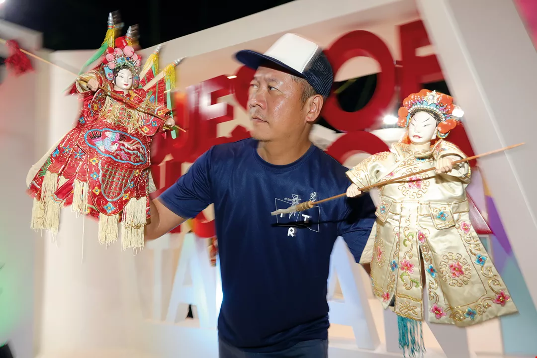 Xiao Qing-yang, ever fond of folk arts, used puppets from his own collection to entertain visitors to the Taiwan Pavilion.