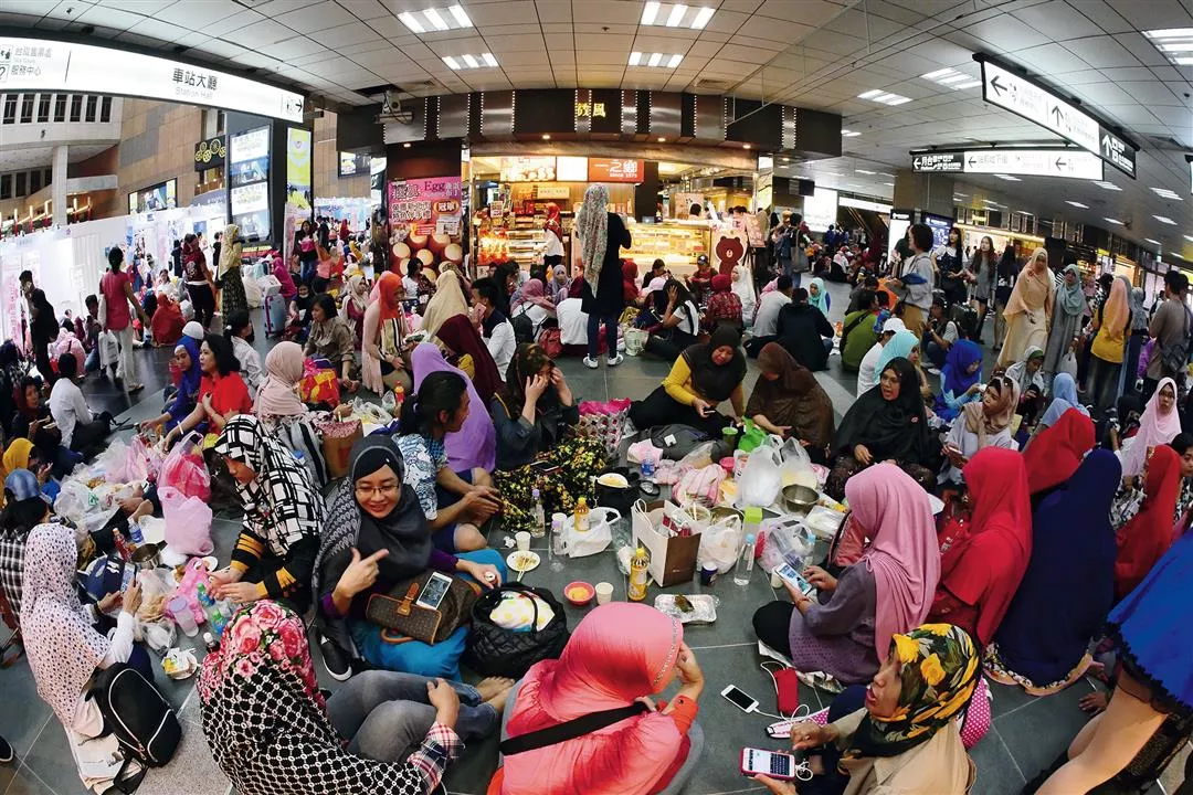 Each weekend Muslims from all over Taiwan gather at Taipei Main Station; this scene is now an established part of Taipei life. (photo by Jimmy Lin)