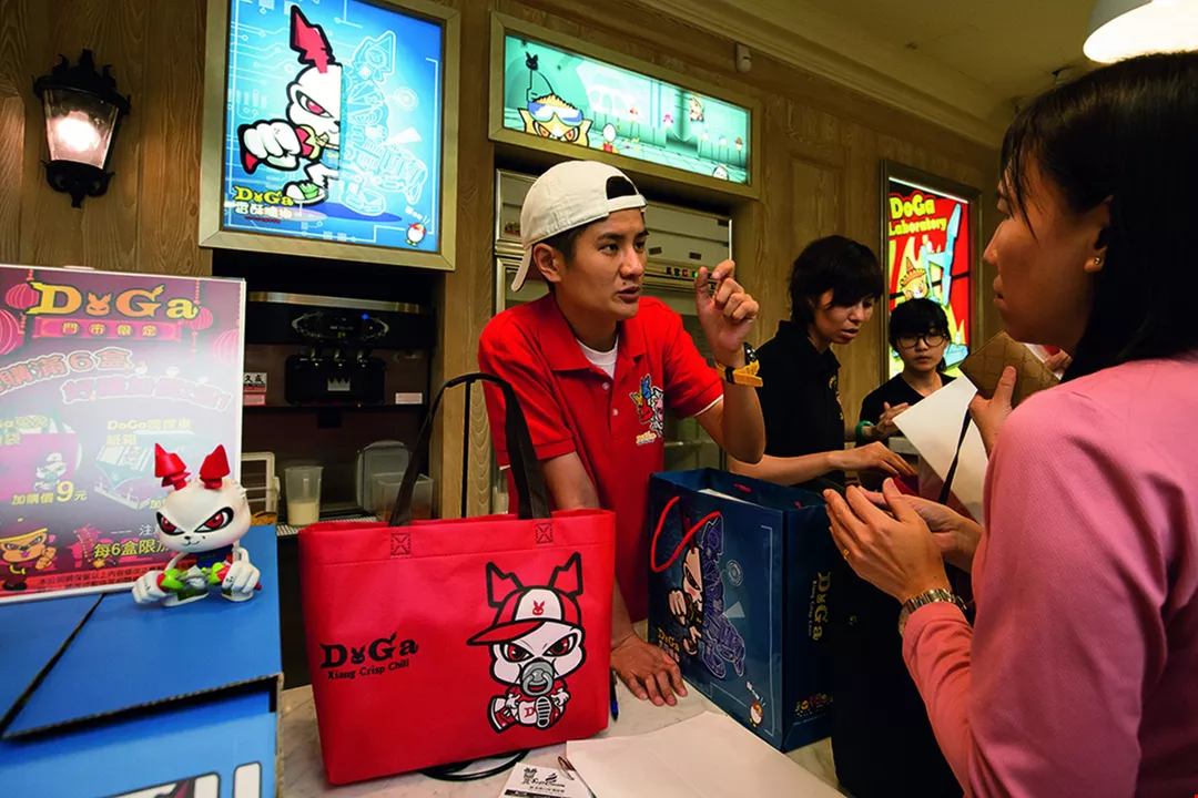 Lee Wei-chen has created an innovative sales model for her chili crisps by integrating cartoon-like “DoGa Transformers” into the interior design of her flagship store.
