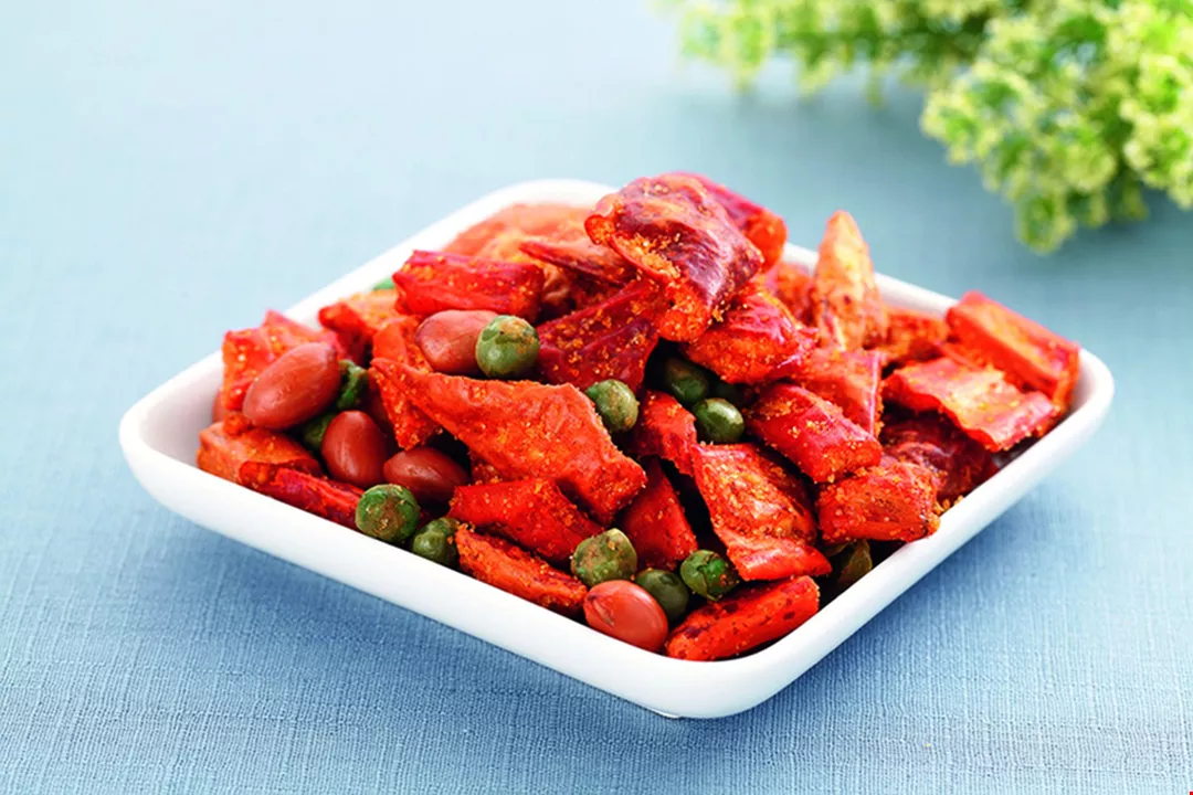 Lee began crisping the chilies left over after making the oil, and giving them to friends and people who bought her paocai. Customers responded with a variety of feedback. When some said the crisps were too oily, she bought a de-oiling machine. When others said the crisps needed added seasonings to stay interesting, she began flavoring them, even stuffing them with white sesame seeds to enhance their aroma.