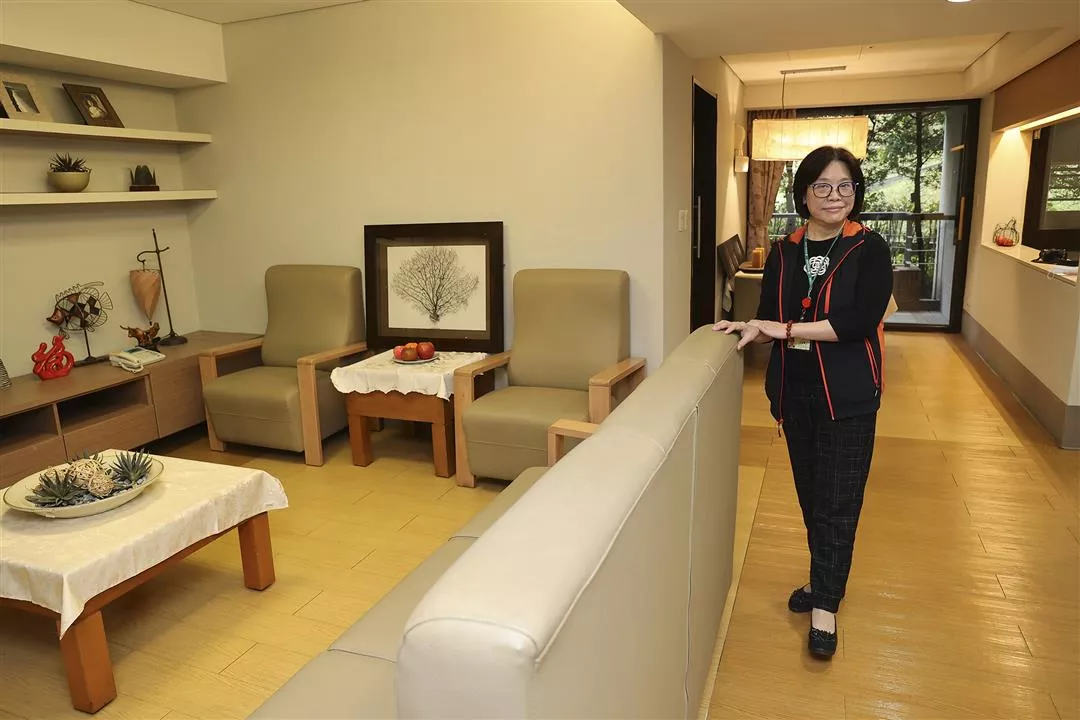 Tu Su-chen, director of the Management Department at Chang Gung Health and Culture Village, says the village offers a spacious wooded hillside environment and comprehensive services, and many people seek to reserve places there even before retiring. (photo by Jimmy Lin)