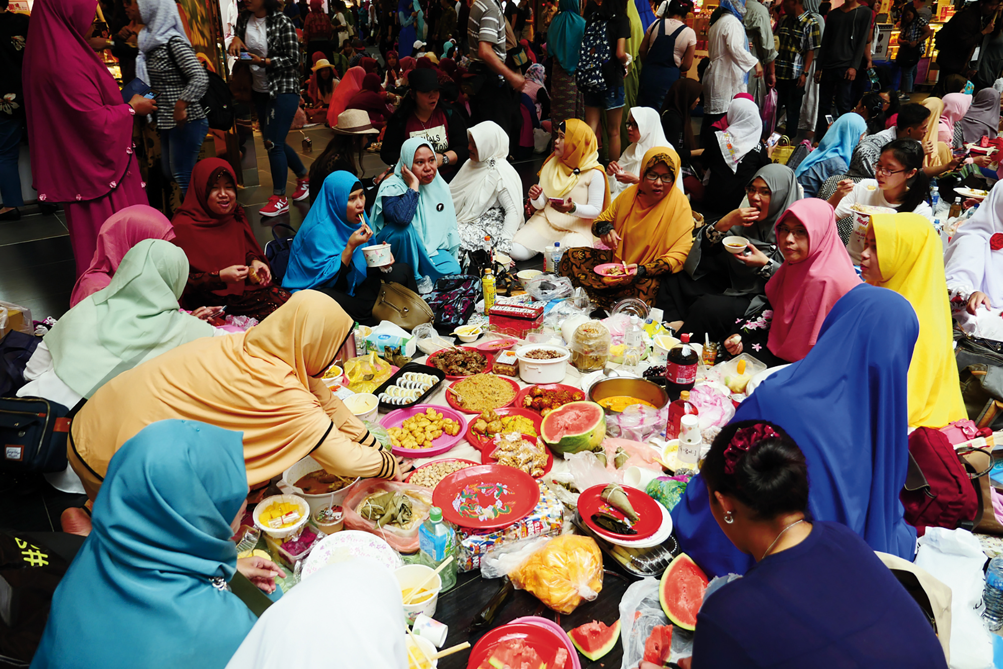 To mark the end of Ramadan, Indonesian migrant workers far from home enjoy the customary feast—this time in the concourse of Taipei Railway Station.
