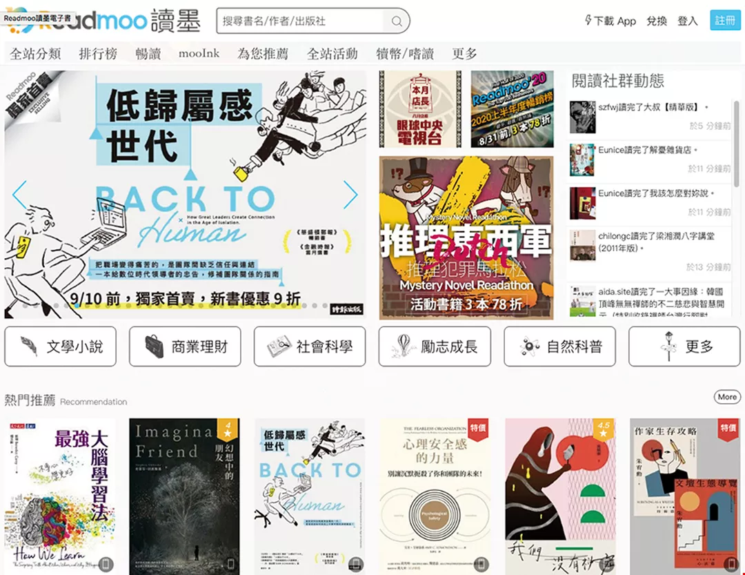 The Readmoo site offers 130,000 ebooks, more than any other traditional Chinese ebook platform.