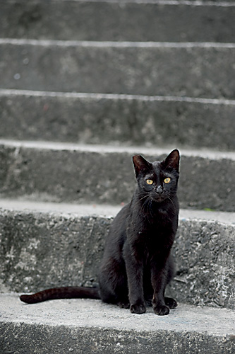 In Mrs. Kitty's broad experience as a cat photographer, there isn't a place in Taiwan-or anywhere else in the world, for that matter-that rivals Houdong in terms of the feline temperament. The cats have experienced such kindness that they gladly return it to human visitors. They seem extraordinarily poised and calm, to the point that administering vaccinations, ordinarily an odious task, is an absurdly easy one. In the winter, a cat or two will press up against a human visitor for warmth. Amidst the bustle of human traffic, they'll sprawl themselves out belly-up on the stairs and drift off into contented snores.