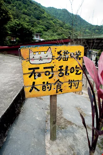 Throughout the tiny village of Houdong are humorous signs exhorting people to treat the cats with care.