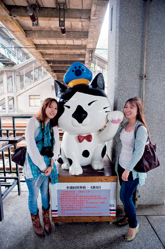 Taking a cue from Tama the cat in Japan, the residents of Houtong have appointed Black Nose-one of the most famous cats-honorary stationmaster. Though he has passed, his spirit continues to guide the tourism and animal conservation efforts. Here is a photo of some of the cat tourists next to a commemorative statue of the departed Black Nose.