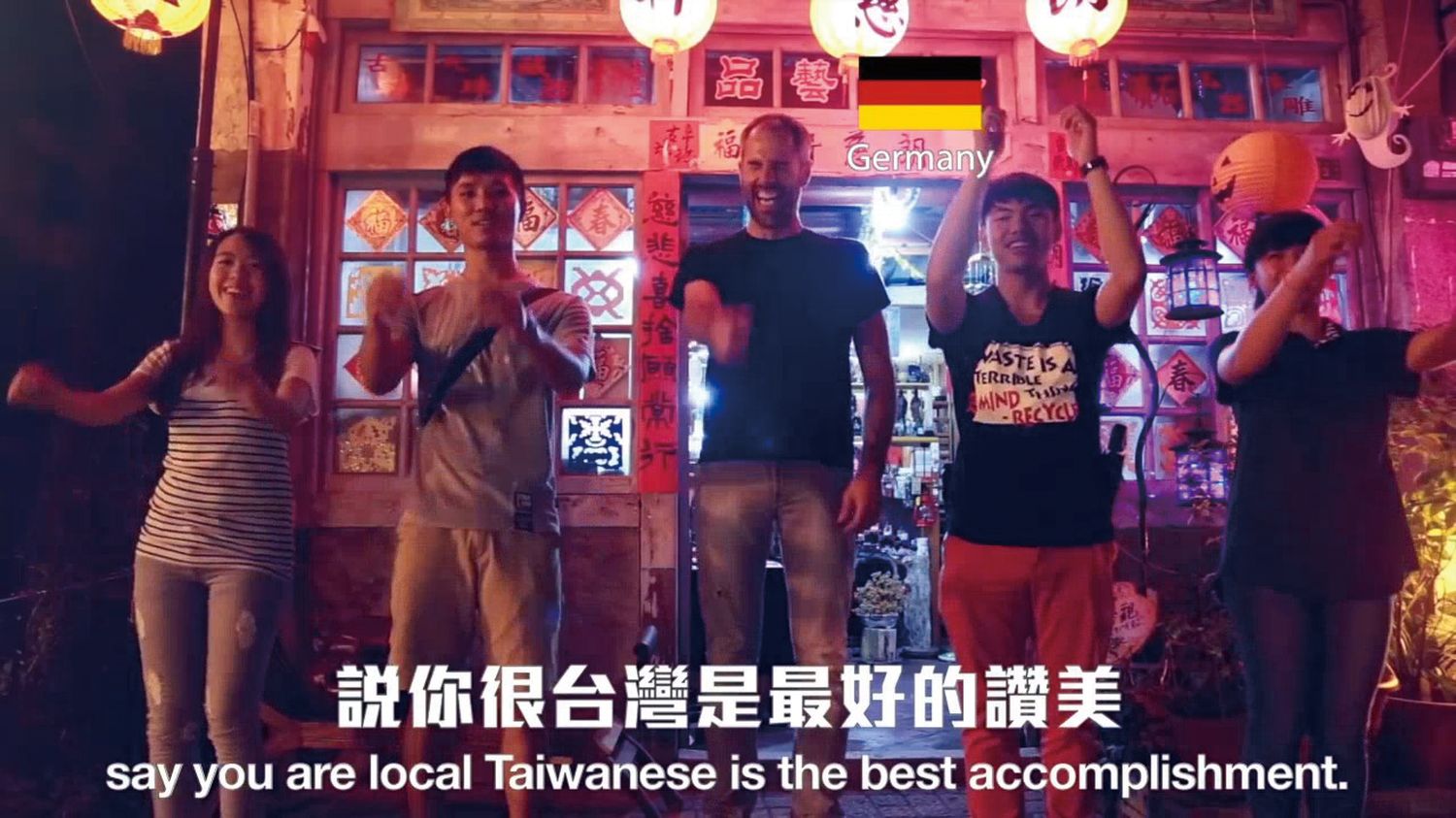 Once they had the lyrics for the soundtrack, they traveled around Taiwan to film people at random, visiting places including Rainbow Village and Tunghai University in Taichung, Garden Night Market in Tainan, Sun Moon Lake in Nantou, Tamsui in New Taipei City, Daxi in Taoyuan, and Hualien’s Qingshui Cliff. “People were more than happy to participate once they knew that the team was working on a film to promote Taiwan—and that included foreigners,” says Liu. The film runs only three minutes, but captures images of 108 people singing and doing exercises. The lyrics feature lines like: “Taiwan is here. Have you seen her? Taiwan is here, have you seen her beauty? Have you tried Taiwan’s bubble milk tea yet? Have you tried Taiwan’s stinky tofu?”