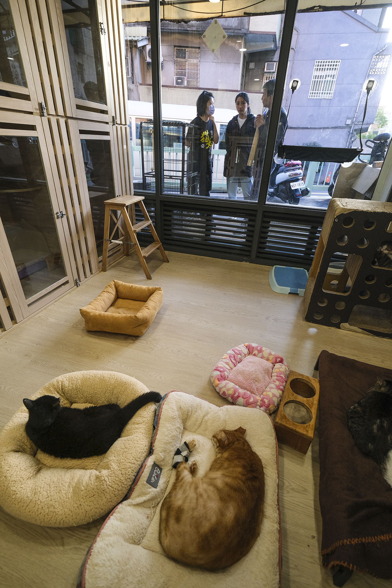Chen started the cat rescue as a “cat hotel” that basically functioned as a “halfway house” for cats. But he came to realize that his organization needed to address a more fundamental issue: communicating the idea of equality for all living things. “I decided that I needed a place that was easy to get to and welcoming for both animals and people, so that people would want to visit.” With that in mind, he established Puzzle Cat Home in New Taipei’s densely populated Yonghe District. In its nine years in the area, the rescue has received only one complaint—from a neighbor who was disappointed that he’d moved the cat tree away from a French window, because “she was no longer able to see the cats.” At her request, he moved it back so she could see the cats again.