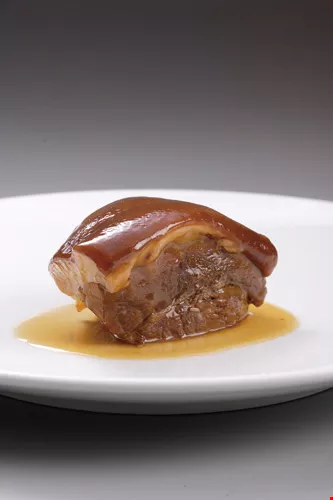 The main course in the National Treasure menu is the Meat-Shaped Stone, which uses top-quality trotter meat that is stewed for two to three hours, cooled, and carved into shape.