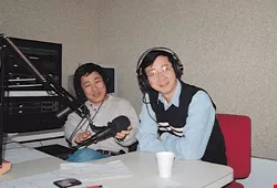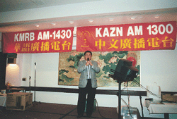 AM1300 in San Francisco is the most successful of Arthus Liu's stations, thanks to its talented staff. Sales manager Felix Kuo (right) not only handles sales, but co-hosts a popular program with Nick Kao.