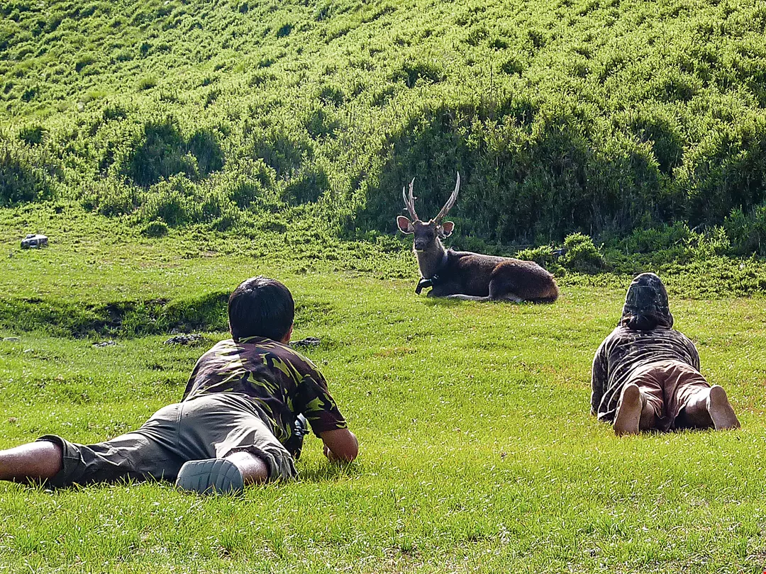 The situation of the sambar in Taiwan today resembles that of the sika in Japan a half-century ago. Wang thinks that the increase in the species’ population thanks to conservation can pave the way for ecotourism, which allows people to appreciate the sambar firsthand, cultivates a reverence for the animal’s natural habitat, and raises popular awareness of ecological conservation in general. The population growth should also allow for the establishment of designated areas in which Aborigines can hunt. This would help limit sambar numbers to a suitable level and reduce environmental degradation. It would also help preserve traditional Aboriginal hunting rituals and the dignity of hunting culture by preserving time-honored ancestral hunting techniques. Moreover, it would enable the sambar deer to act as a bridge linking ecology, conservation, and economic needs.