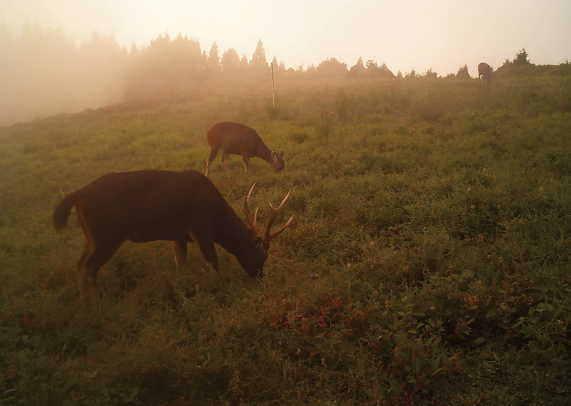 The success of conservation efforts in recent years has led to exponential growth in the sambar population, and with no natural enemies, the deer have begun to negatively impact the forests. This has been especially noticeable in high-elevation coniferous forests. Recent incidents of large-scale tree loss have occurred primarily in forests of fir and Taiwan hemlock trees. Yushan National Park has been particularly hard hit.