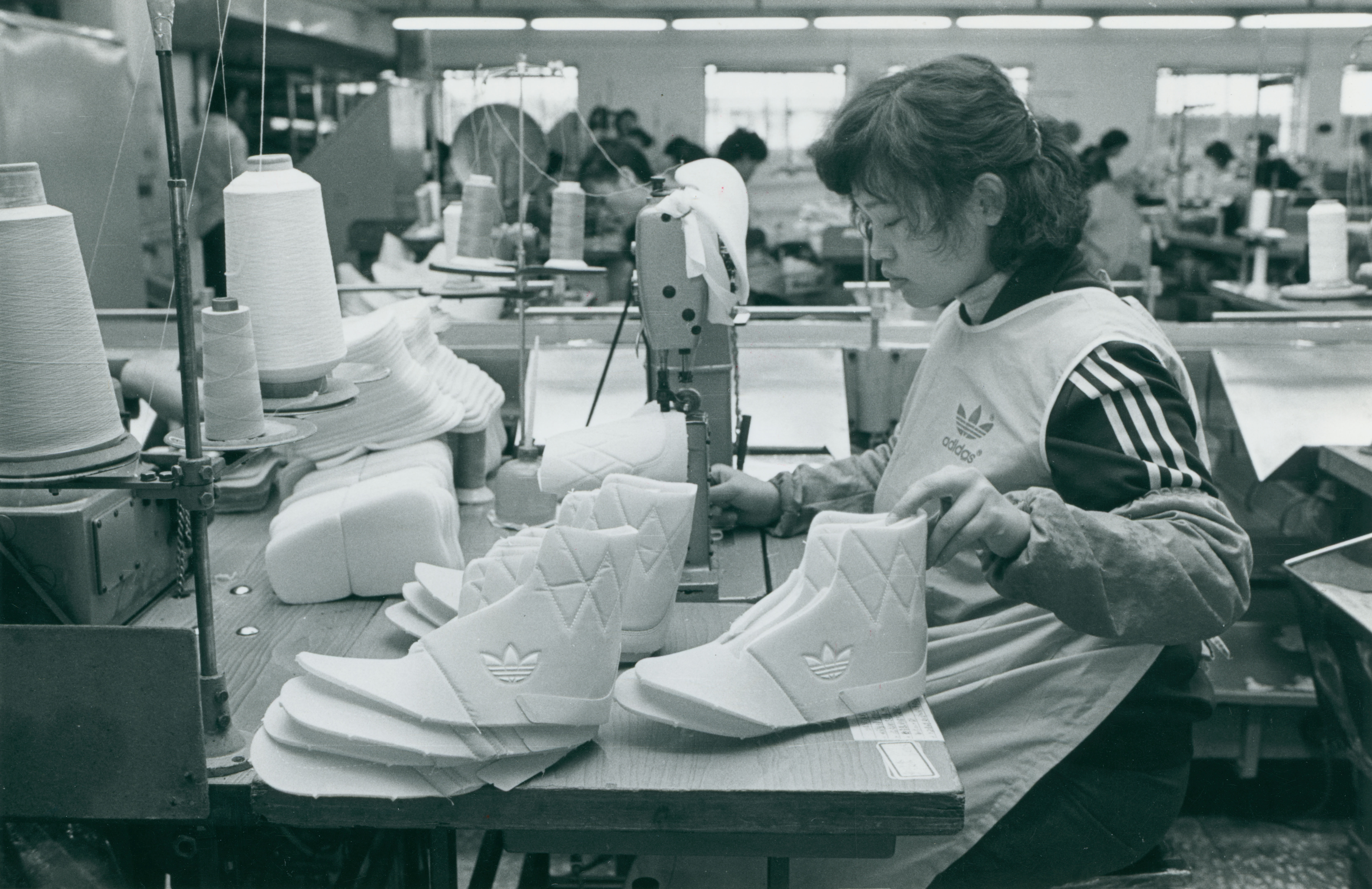n the future the influence of brand-name goods in the competitive consumer market will grow much stronger. Therefore, renowned brands pay close attention to protecting their trademark. Pictured is a scene from the athletic shoe production at Adidas.