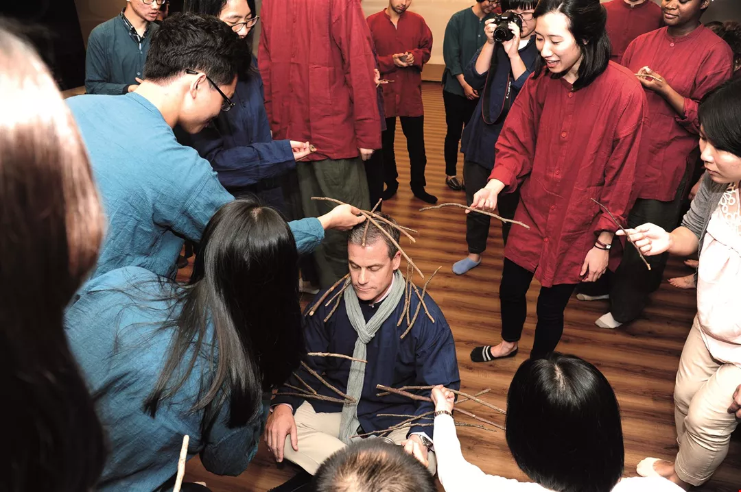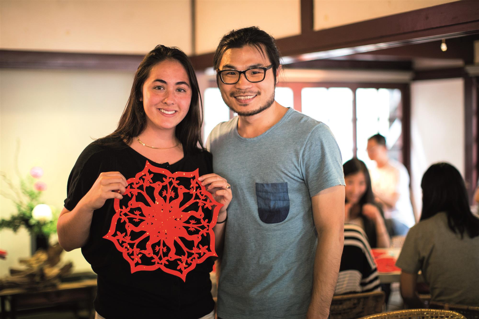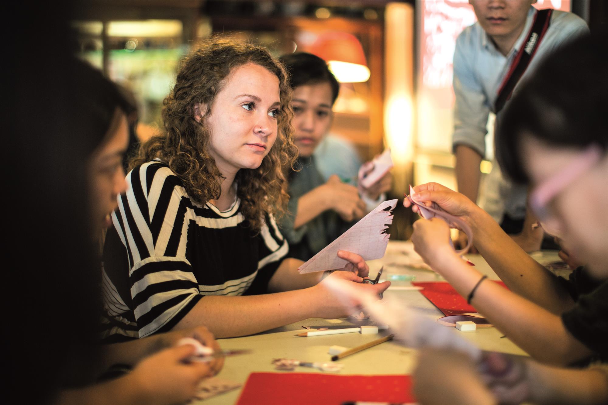 Paper cutting artist Yang Shih-yi helps CIEE students create their own masterpieces.