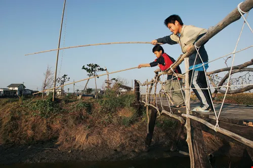 At the mention of Chiku Township in Tainan County, most people probably think of the black-faced spoonbill, an internationally renowned bird species that rests here during its winter migration each year, and of course, the endless expanses of salt fields, oyster farms, and milkfish ponds. Chiku is also home to Dorigo Guesthouse. A-Wang and A-Chuan, proprietors of this fishery-ecology-inspired inn, both grew up in this fishing village. After toiling amid the din of the city for several years, they elected to return to the place of their childhood to run a guesthouse. Nestled among the fishing village's vast fish farms, the guesthouse not only offers travelers an all-new experience, it represents a new life for this couple and their children.