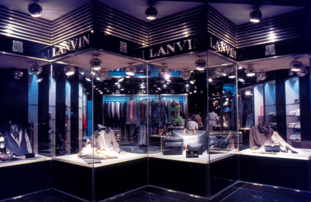 2. The unique display windows and cases of the fashionable Paris-based men's boutique, Lanvin, are just one feature of the store's elegant interior decoration.