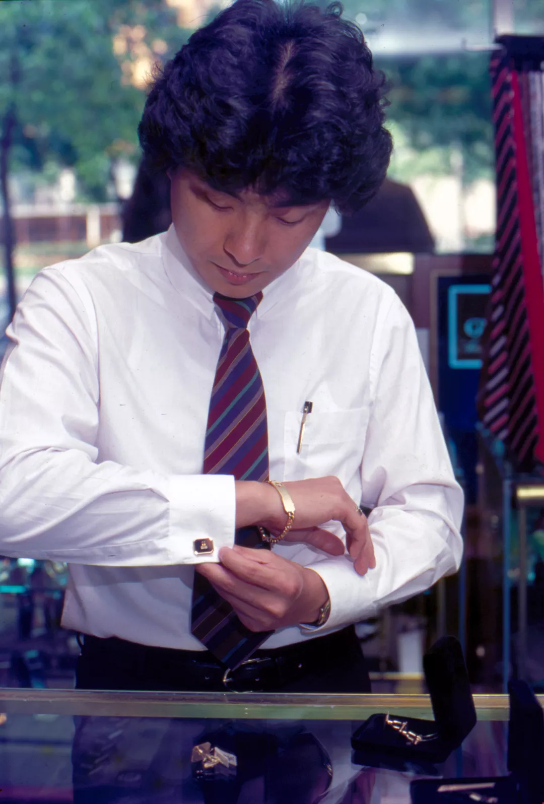Presently, shops carry two seasons: spring-summer and autumn-winter. Clerks in the shops are selected for pleasing appearance and proper work attitude. Customers, while assumed to be the successful, middle-aged man come in all shapes and sizes. Often wives and girlfriends come to buy, and there are those who come hoping to buy that special gift.
