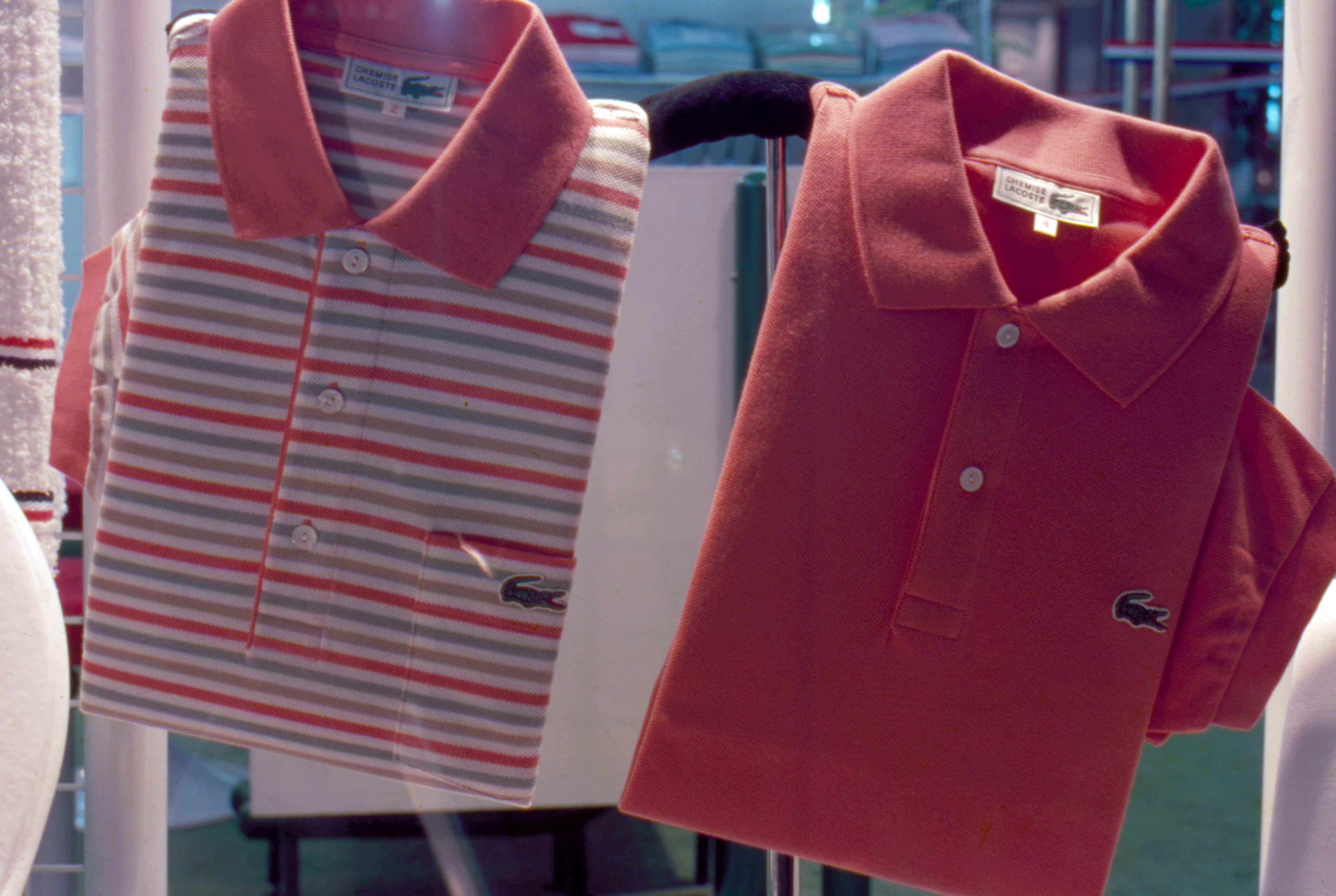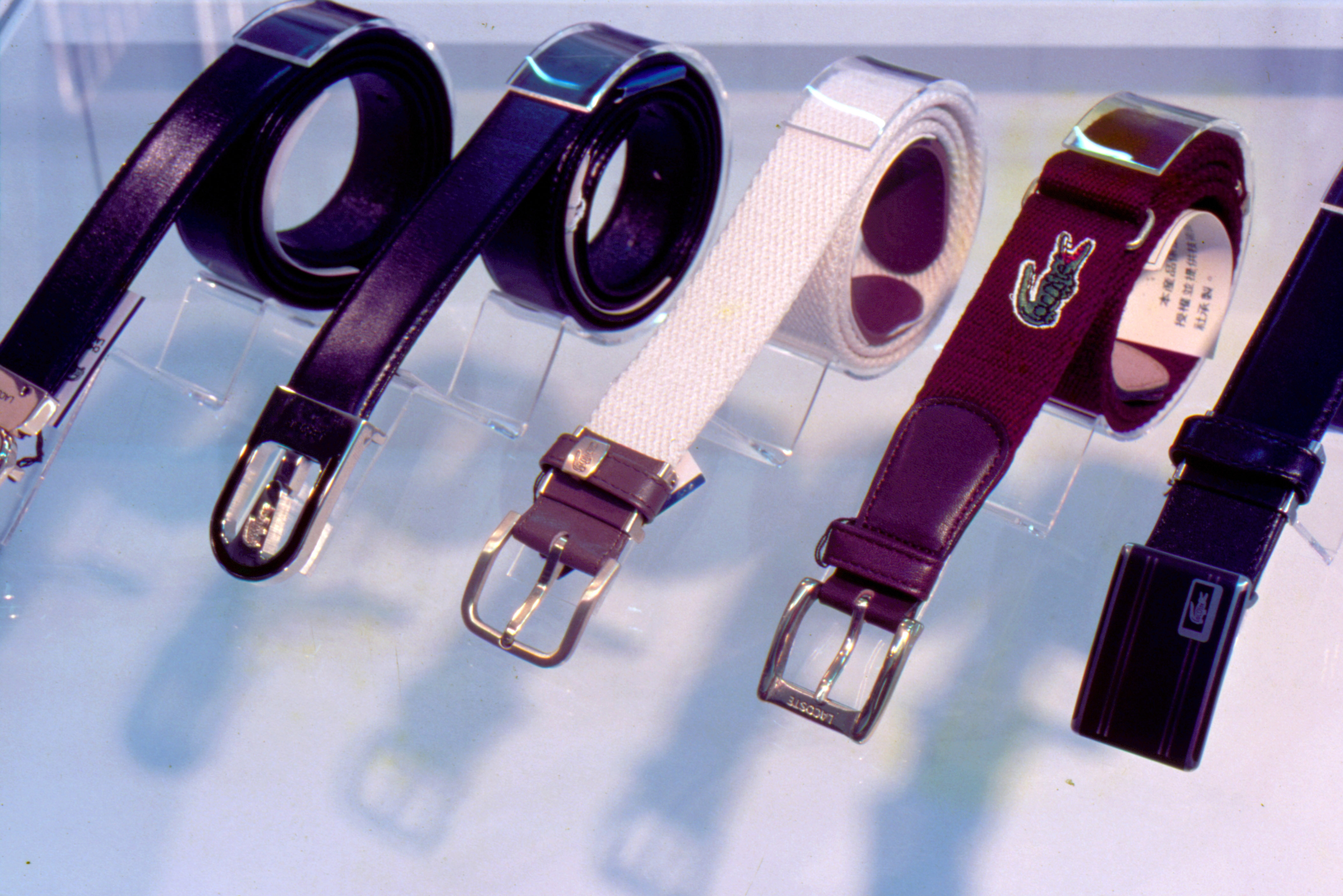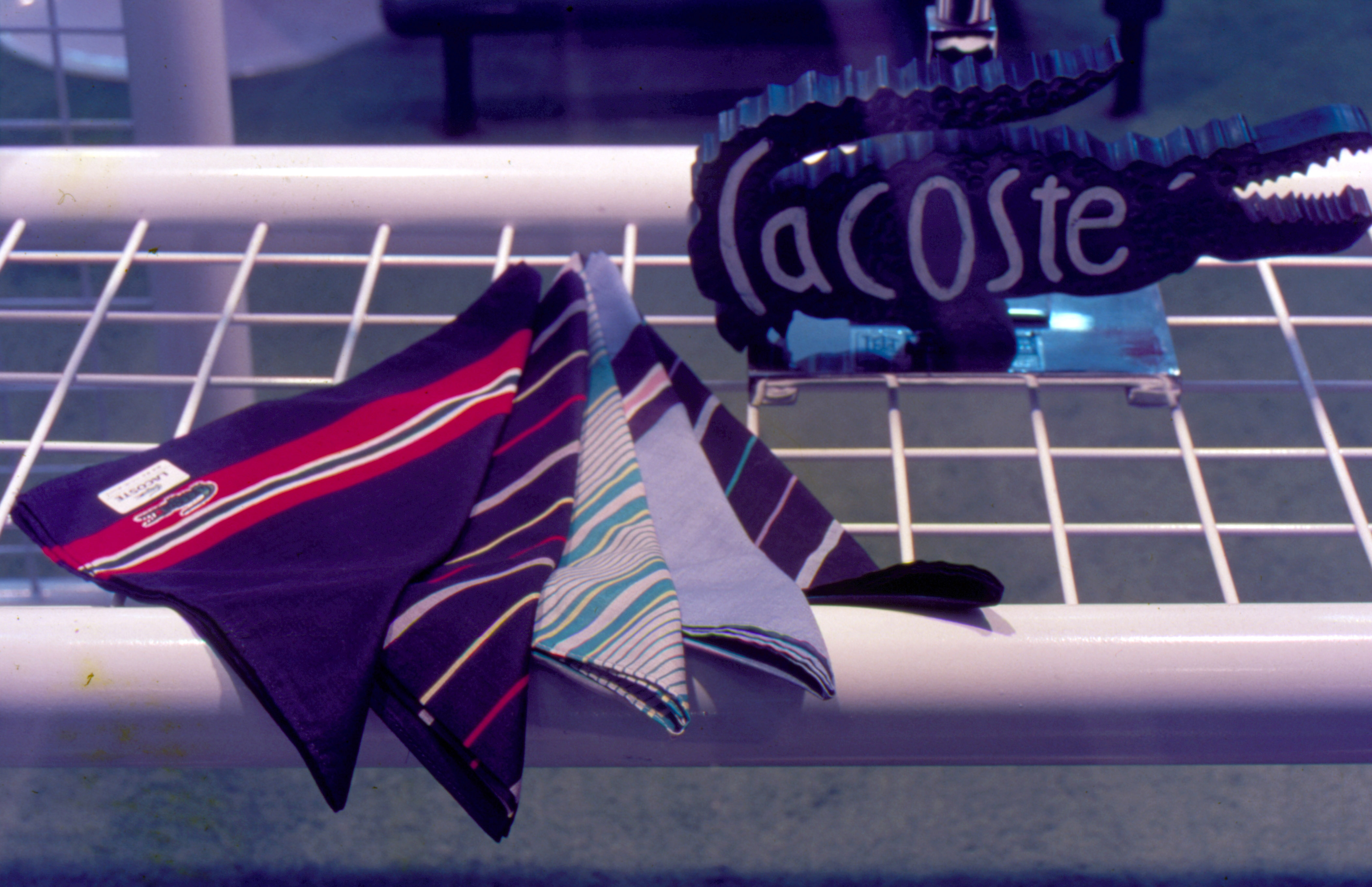3,4,5. The fashionable French designer label, Lacoste, has boutiques which offer a complete line of products such as belts, handkerchiefs, leisure shirts, etc.