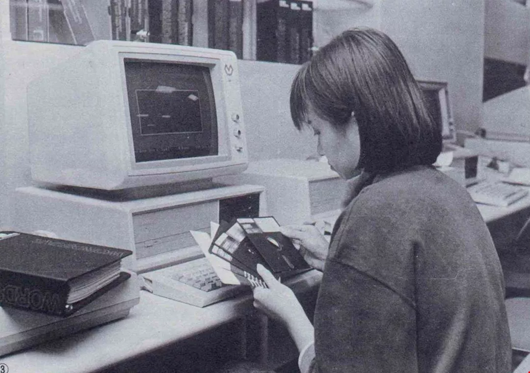3. In order for the computer to operate in a given function it must be outfitted with the proper software equipment. Pictured is a computer operator holding disks.