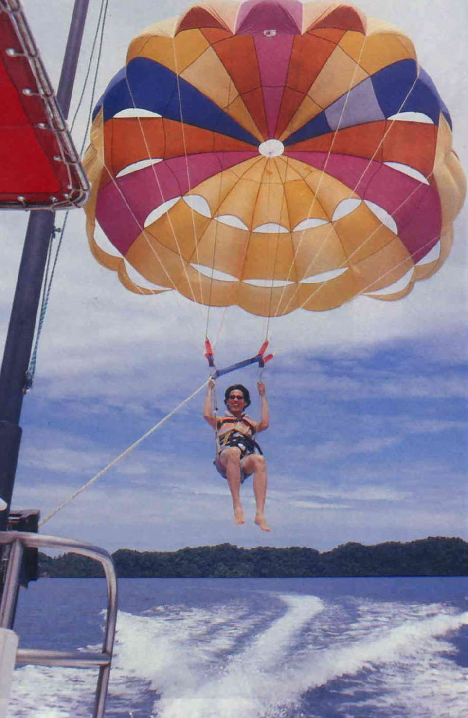 Palau is partially encircled by coral, making for calm seas, and the area is almost always windless. Catch a ride on a parasailer, and you can see how close to Heaven you are.
