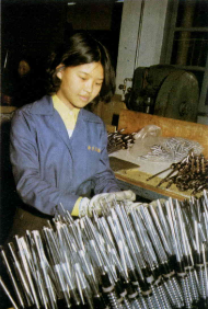 The Executive Yuan established the Umbrellas Export Association in 1964 to promote overseas sales and study world markets. Since then, exports have expanded rapidly each year, until foreign exchange earned amounts to US$80 million a year. Today, the varieties are numerous: men's, women's, children's; golf, beach and decorated umbrellas; hand-opened, automatically opened, and umbrellas folded, two, three or four times; German-patterned, flat-topped pagoda and square umbrellas; covered with cotton, nylon, manmade fiber and satin cloth; plain, colored or printed, and with or without springs.