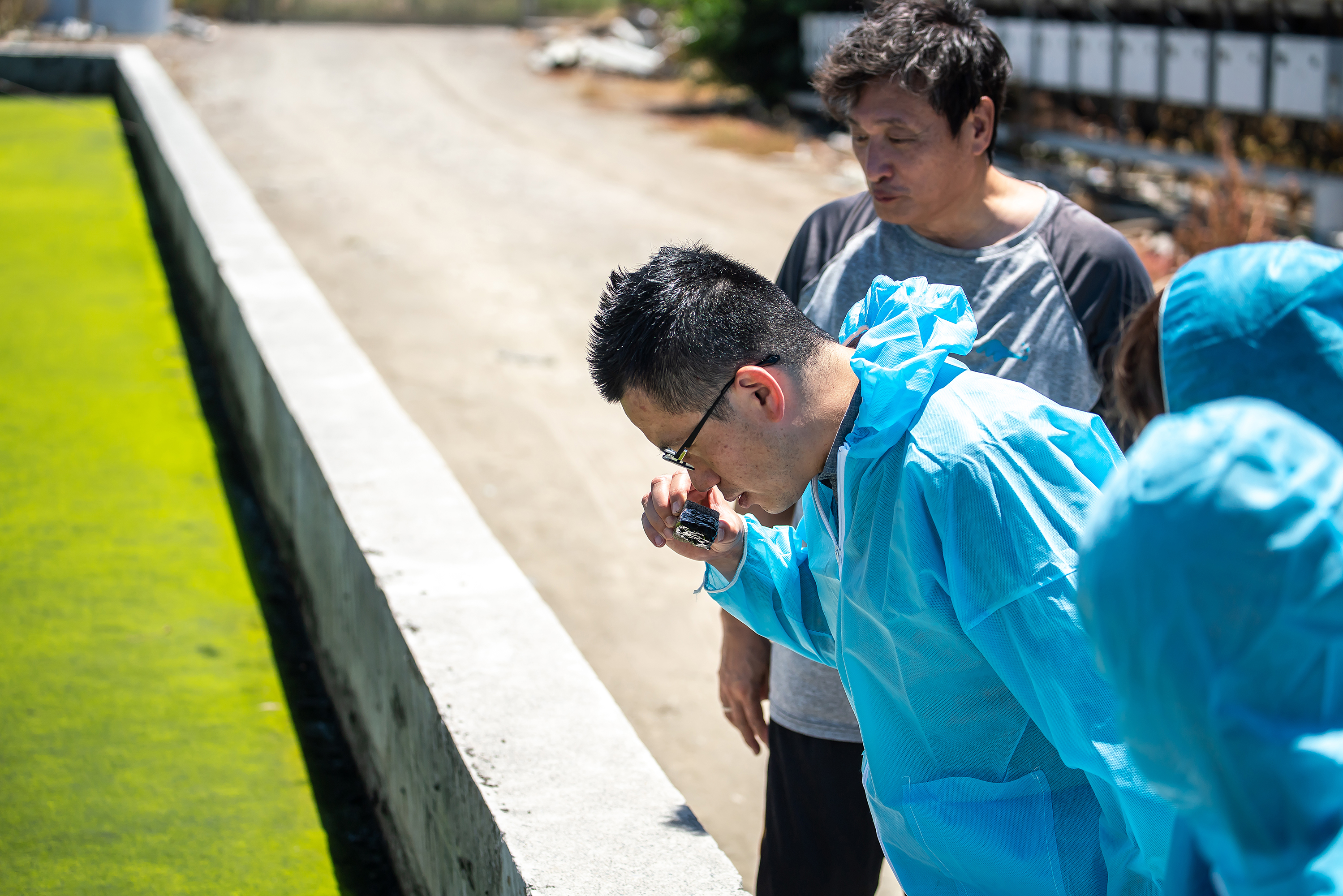 On a hot August day, Li takes us to visit Longsheng Livestock Farm in Changhua County’s Fangyuan Township. Farm boss Martin Lin guides us through his extensive farm to the final sedimentation tank of the wastewater treatment system. Pulling out a tube, he shows us that the treated wastewater that is about to be discharged is a light grey-green color and gives off no unpleasant odor, but has a faint grassy fragrance. With broad smiles on their faces, Lin and Li both say, “To see that wastewater can be treated to this level is really heartwarming.”