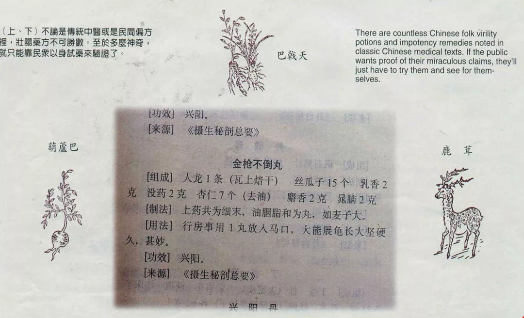 There are countless Chinese folk virility potions and impotency remedies noted in classic Chinese medical texts. If the public wants proof of their miraculous claims, they'll just have to try them and see for themselves.