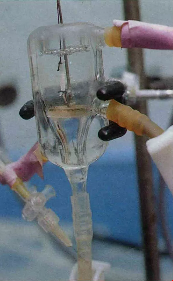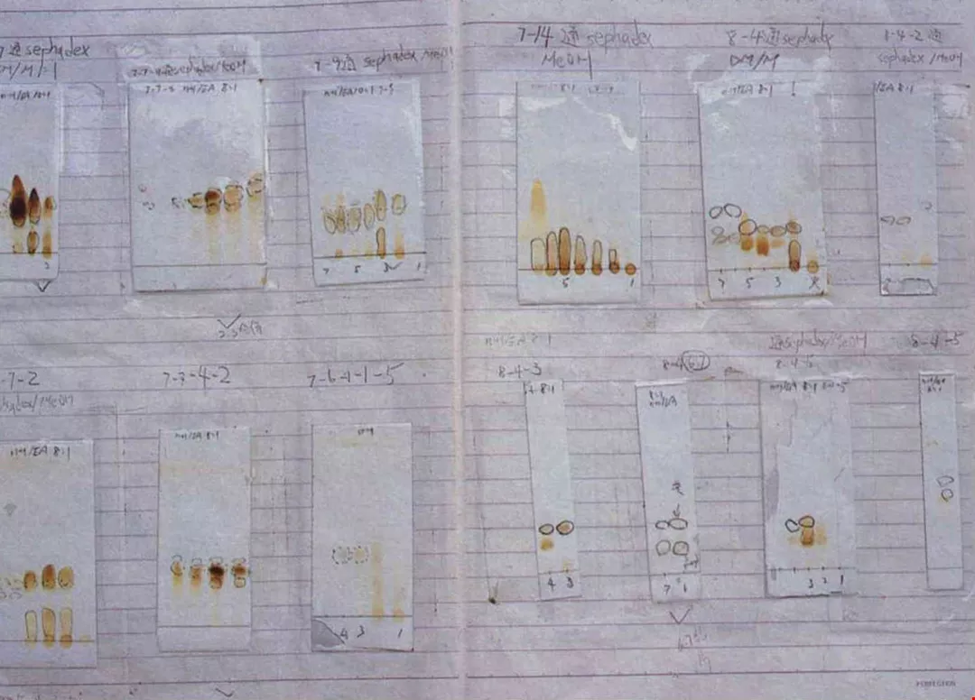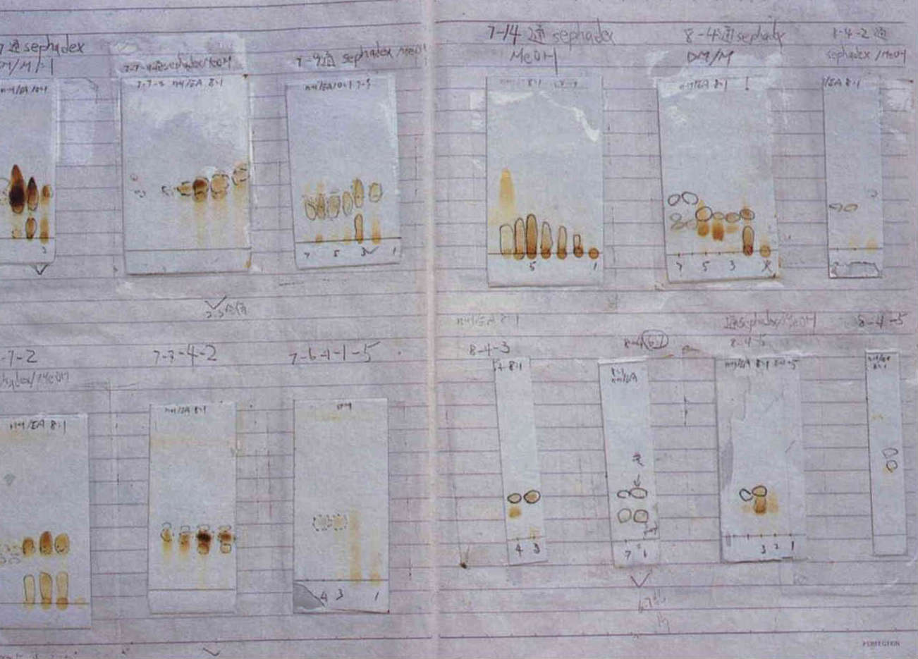 Every one of these herbs contains at least a thousand individual chemical components. Chen first grinds the herbs into powder and boils them in different solvents to obtain dry and concentrated initial extracts. Then Chiu Wen-hui carries out animal testing, individually applying these extracts to separate groups of rabbit penis tissue in vitro, so as to test their active effects. At this point the researchers make records and write reports that include graphs of the average swelling in each group and discussions about which chemicals are most active. The next step is to perform detailed chromatographic analysis, employing series of upwards of ten chromatographs to gradually screen out components until they are left with individual active chemical ingredients.