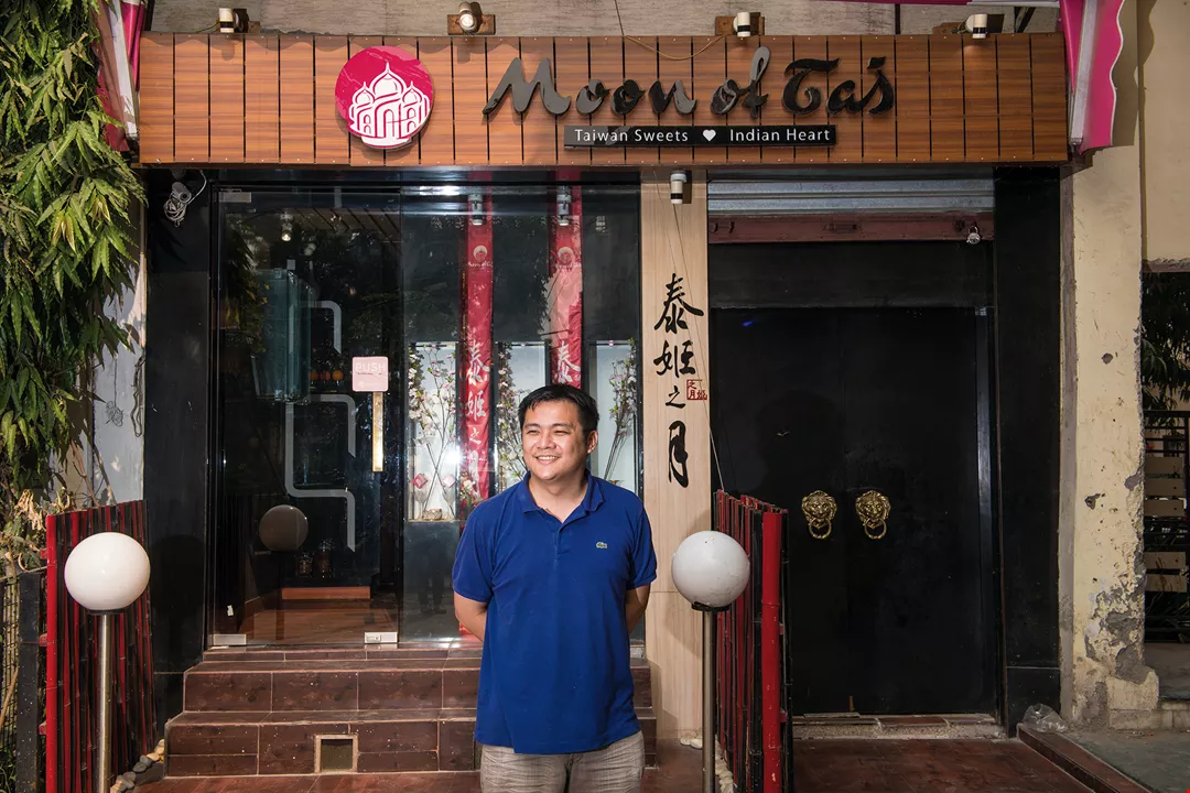 Hugo Wang’s food store Moon of Taj has a small storefront in the central market district of Lajpat Nagar, South Delhi, that blends Indian style with Taiwanese elements: tucked away inside the store is a gold-colored room with a raised floor, one wall decorated with a painting of peacocks, which Indians regard as auspicious; visitors are greeted with tea served in cups made by Taiwan’s Tai-Hwa Pottery; and the store’s own products are wrapped in eye-catching pink, sapphire blue, and violet packaging.