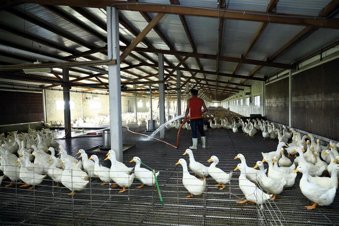 Smart poultry houses are computerized to dispense both feed and drinking water automatically. Underfloor scales measure the birds' average daily weight gain.
