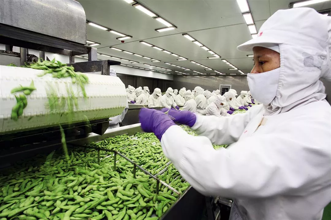 One of the keys to Taiwan’s strong position in the global edamame market is that no more than four hours elapse from picking to freezing. (photo by Jimmy Lin)