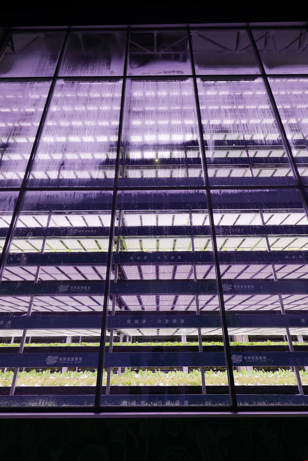 With 12-channel-spectrum LED lights, YesHealth creates artificial sunlight that allows the farm to grow vegetables out of season. (photo by Jimmy Lin)