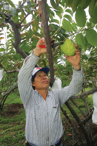 For example, a farmer named Chu from Meinung Village, Peinan, planted an orchard of 1,000 atemoya trees. Because the trees and orchard are free of disease and protective barrier tents have been raised against typhoons to prevent fruit being blown to the ground, this has been selected as an export fruit orchard.