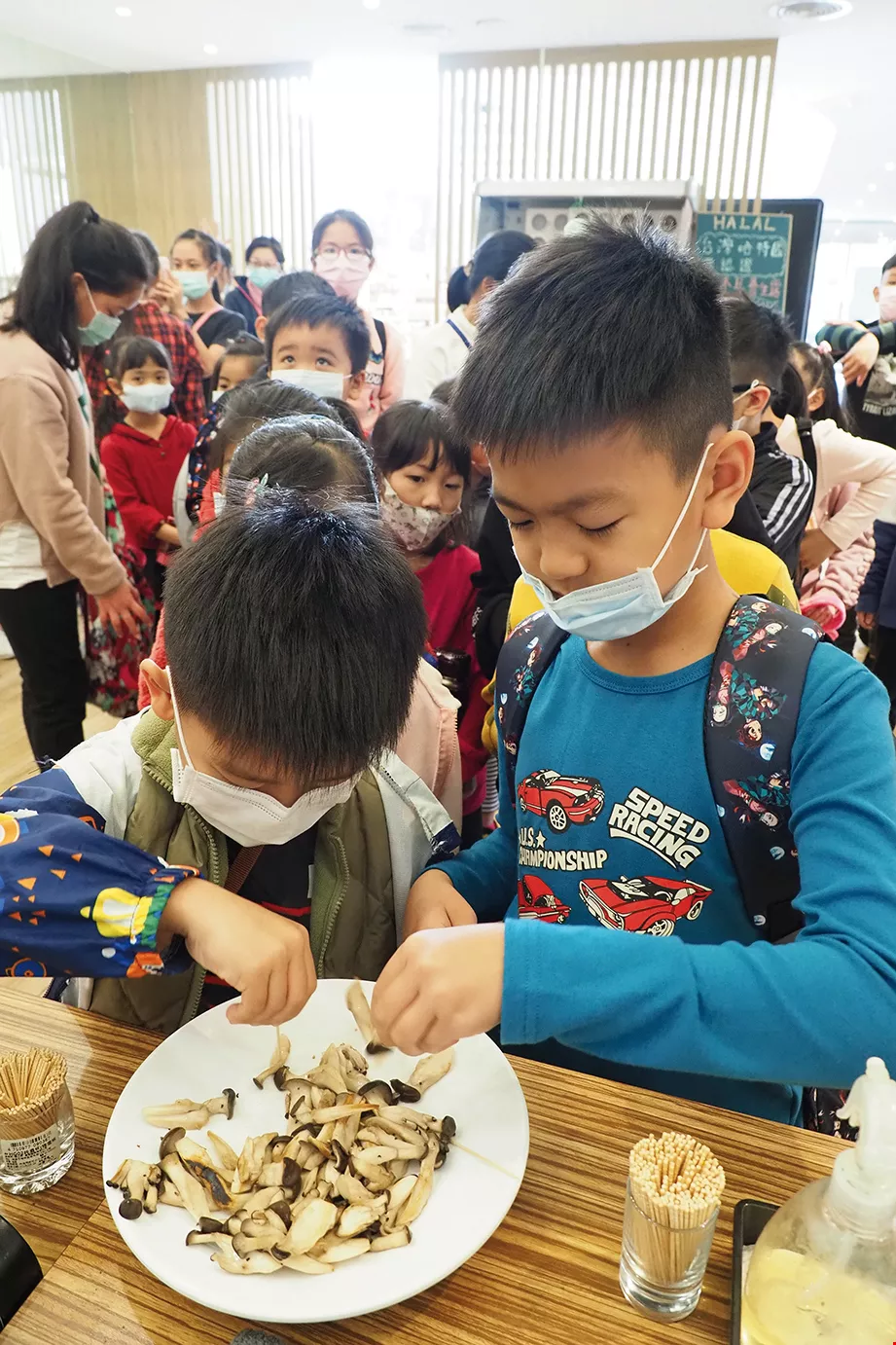 The mild breeze of a spring day feels especially warm amid the sounds of children playing. Teachers and students are on a field trip to the Magical Mushrooms Tribe farm in Puxin Township, Changhua County, to learn about the life cycle of mushrooms.