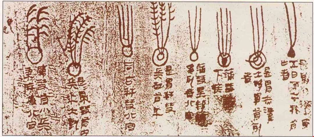 Court astronomers in ancient China were very anxious to observe any unusual celestial phenomena, for they might reveal the "will of heaven." The earliest formal records of H alley's Comet were made by the Chinese. Shown here are depictions of comets from the silk book Tianwen Qixiang Za Zhan ("Miscellaneous Interpretations of Astronomical and Meteorological Phenomena") fro m the Han tombs at Mawangdui in Hunan Province, mainland China. (from a PRC publication on Mawangdui)