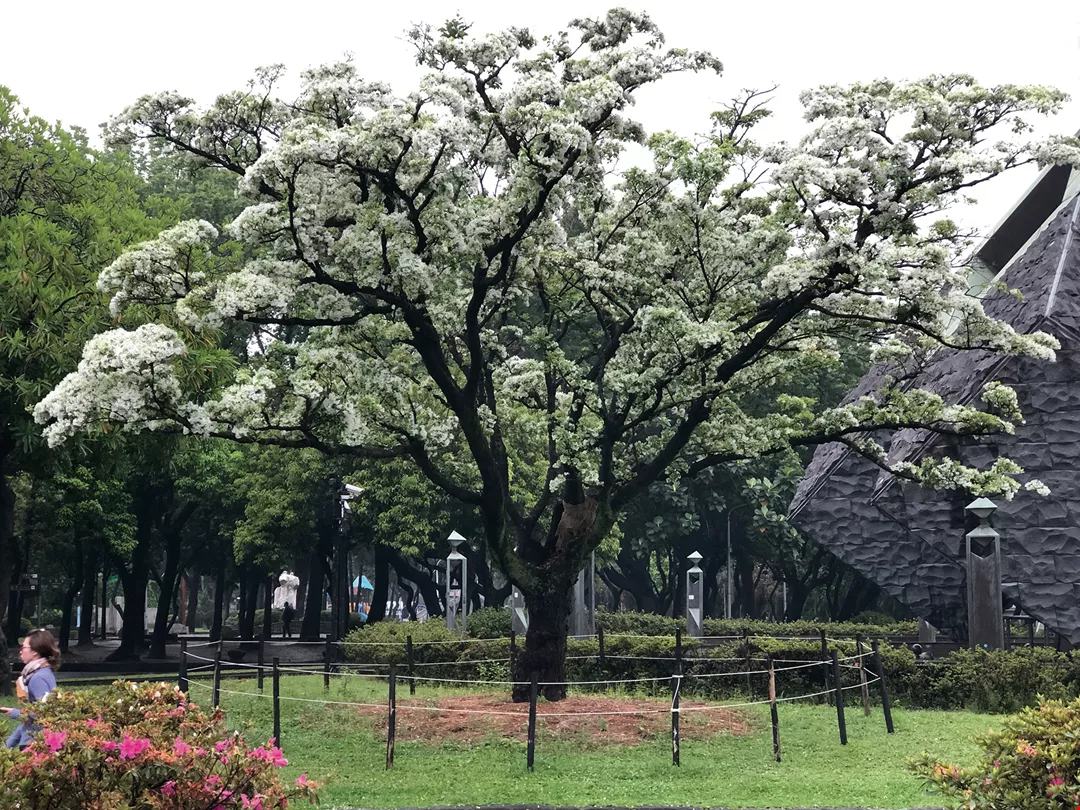 This picture shows a Chinese fringe tree (also known as a tassel tree) at 228 Peace Memorial Park in Taipei flowering after undergoing soil amelioration. (courtesy of Persimmon Books)