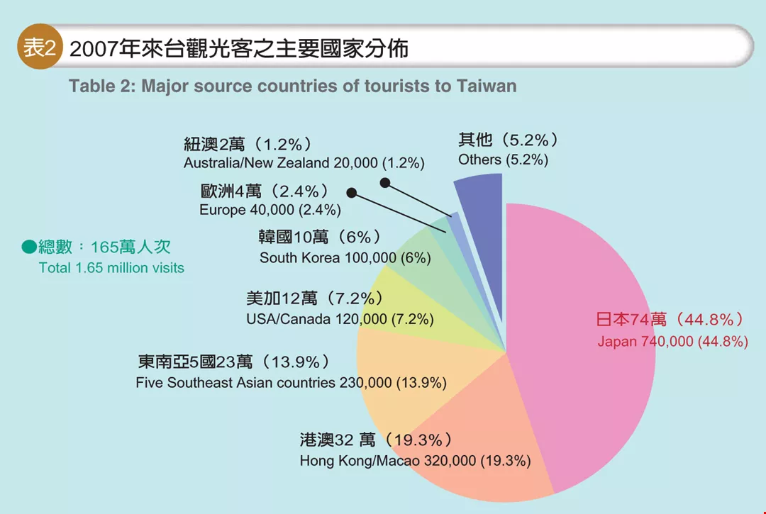 Table 2: Major source countries of tourists to Taiwan