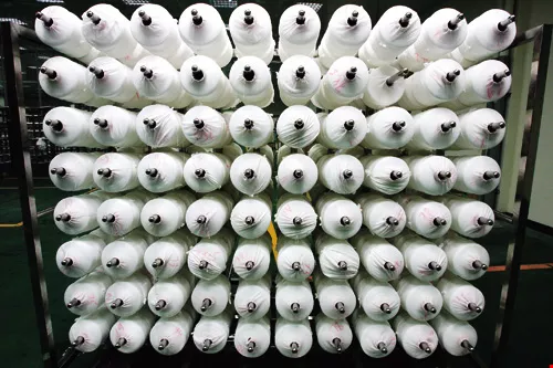 In recent years Taiwanese textile firms have been moving investments in mid- and upstream operations to ASEAN countries. Firms are simply responding to commercial incentives, but the question arises as to whether their choices will damage Taiwan's textile industry as a whole. The photo, taken at Eclat (Vietnam)'s plant, shows loosened yarn ready for dyeing.