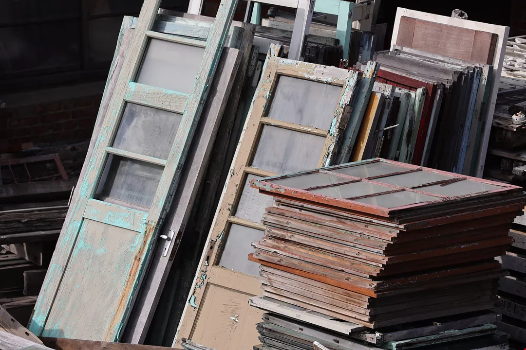 An artist’s use of discarded window grilles to create an installation demonstrates another application for secondhand building materials.
