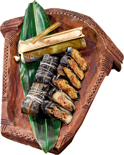 Indigenous ingredients and cooking utensils come from the earth; a-bai and zhutong fan are very similar to Han Chinese zongzi in terms of ingredients and preparation.