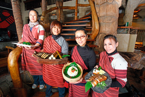 Indigenous restaurants not only offer delicious food, but also provide an insight into the culture. The photo shows Badasan Restaurant in Bali District, New Taipei City. Waiters wearing the traditional clothes of the Seediq tribe are serving mixed ethnic dishes—a fusion of indigenous and Han Chinese dishes that cater to tourists’ tastes, and perhaps evoke images of indigenous culture.