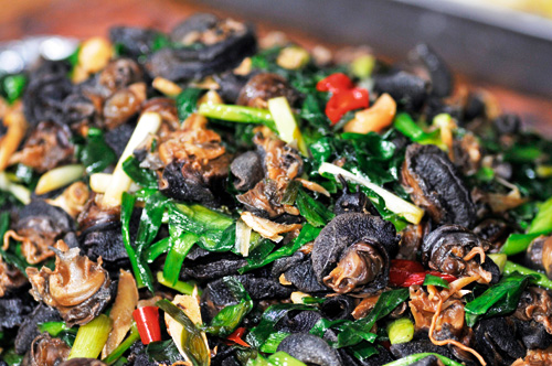 Fried snail meat