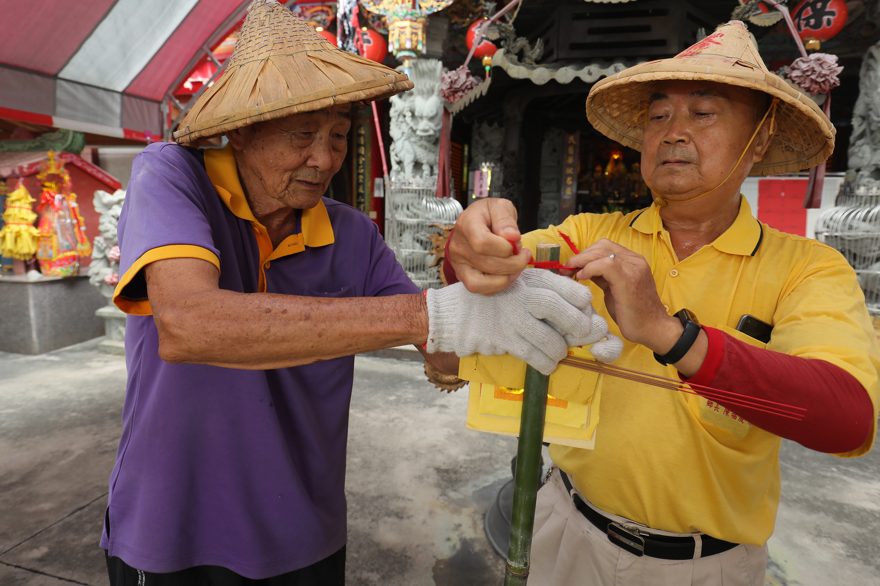In Shuangfu Village in Chiayi’s Minxiong Township, cultural historians in recent years have spearheaded an effort to revive the mid-autumn ritual of making Earth God staffs at Bao’an Temple and Fengfu Temple. While this ritual in the old days was carried out by farming families individually, it is now becoming a communal expression of thanksgiving at the. We went along to take part.