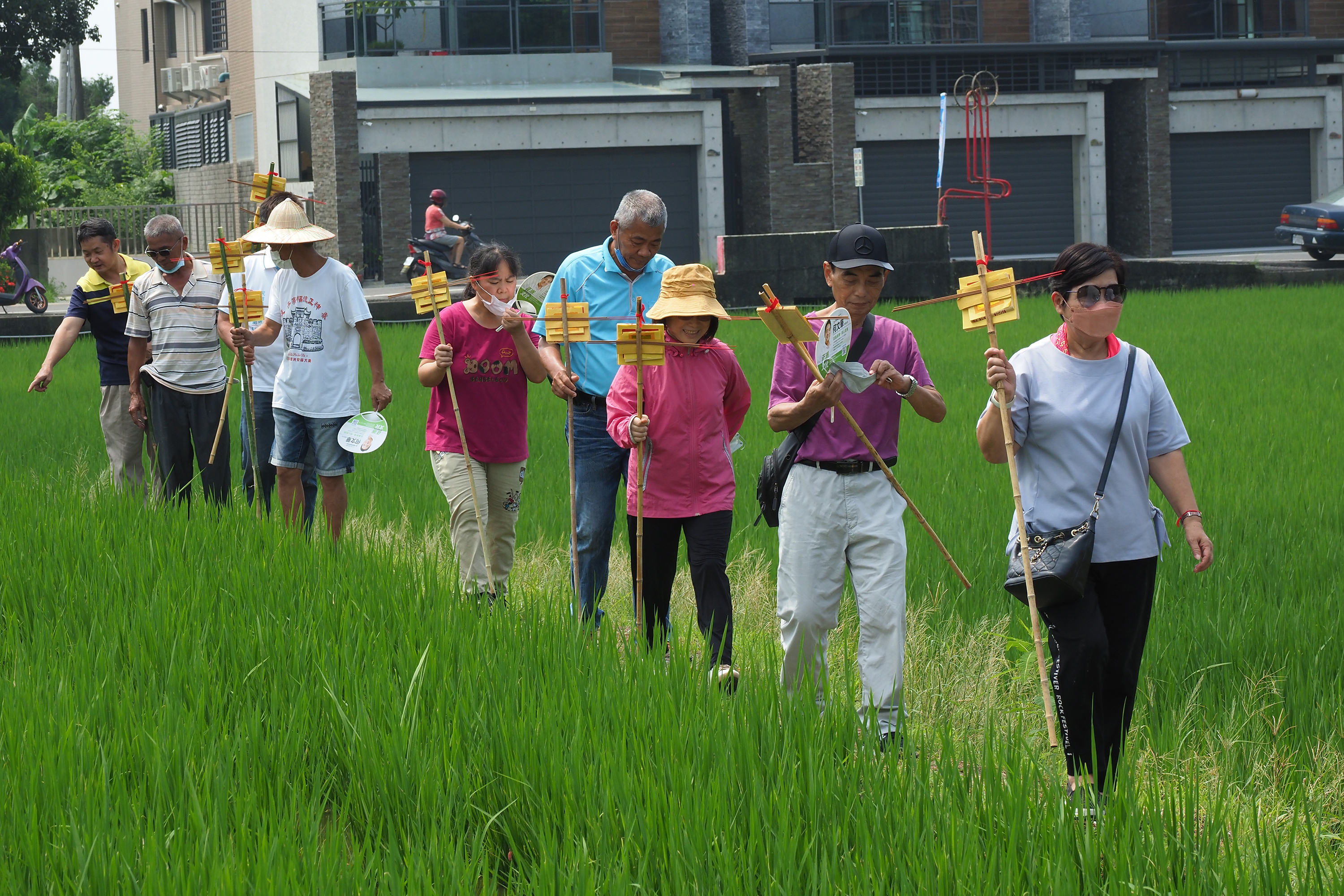 Local residents head into the fields to drive Earth God staffs into the soil.