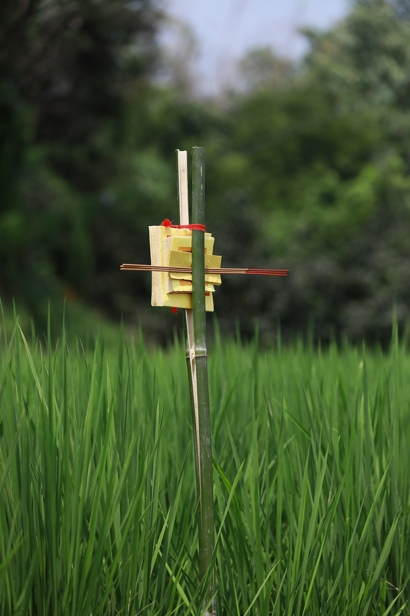 Led by the two old farmers, the villagers take the staffs out to the fields, where they set out an array of offerings, pray to the earth with incense sticks in hand, and give thanks for a bountiful harvest. Everyone then makes their way to paddy embankments, where they drive the Earth God staffs into the soil, thus concluding the ritual. A student named Liao, who has never taken part in the crafting of such staffs, says he has come away feeling more closely in touch with the land.