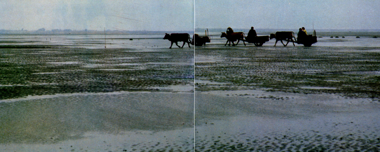 In the Taiwan Strait, where the tidal range is great, oyster farmers have traditionally arranged bamboo stakes in circles or parallel rows along the exposed sandbanks, enclosed within fences. This traditional method is still used by many oyster farmers, particularly at Lukang. It is not, however, regarded as ideal, since during ebb tides, the oysters are exposed to the sun and air for long periods at a time. As a result, the young oysters are only able to eat at irregular intervals, and their growth is stunted. In addition, the bamboo stakes are arranged so closely together that the loose shifting sand and mud sometimes smothers them. Hsiangshan is a typical example of a fishing village which suffers from this problem.