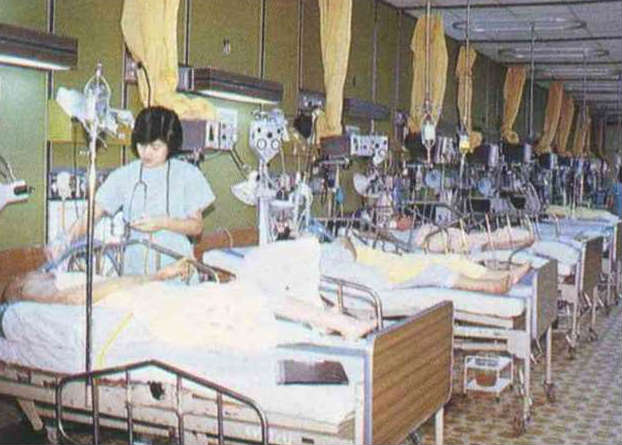To maintain a completely sterile environment in the burn treatment center, only hospital staff may enter. Patient's friends and relatives can communicate by intercom.