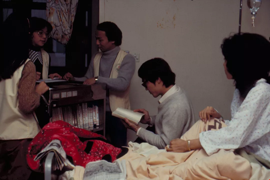 Many college students work as volunteers in the center in administrative roles, and in manning the library trolleys which provide reading material for patients. They also console lonely patients and entertain young patients with stories.