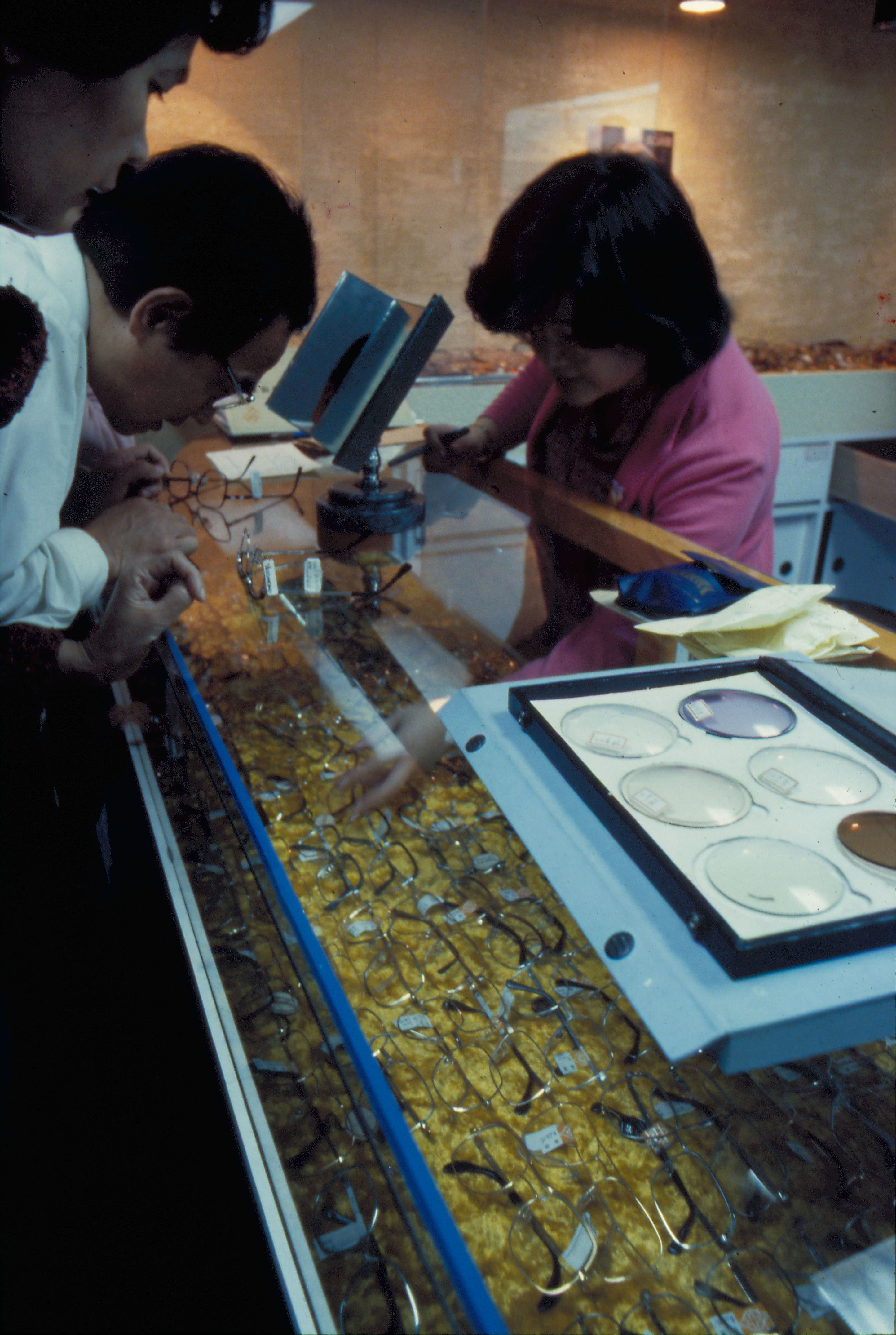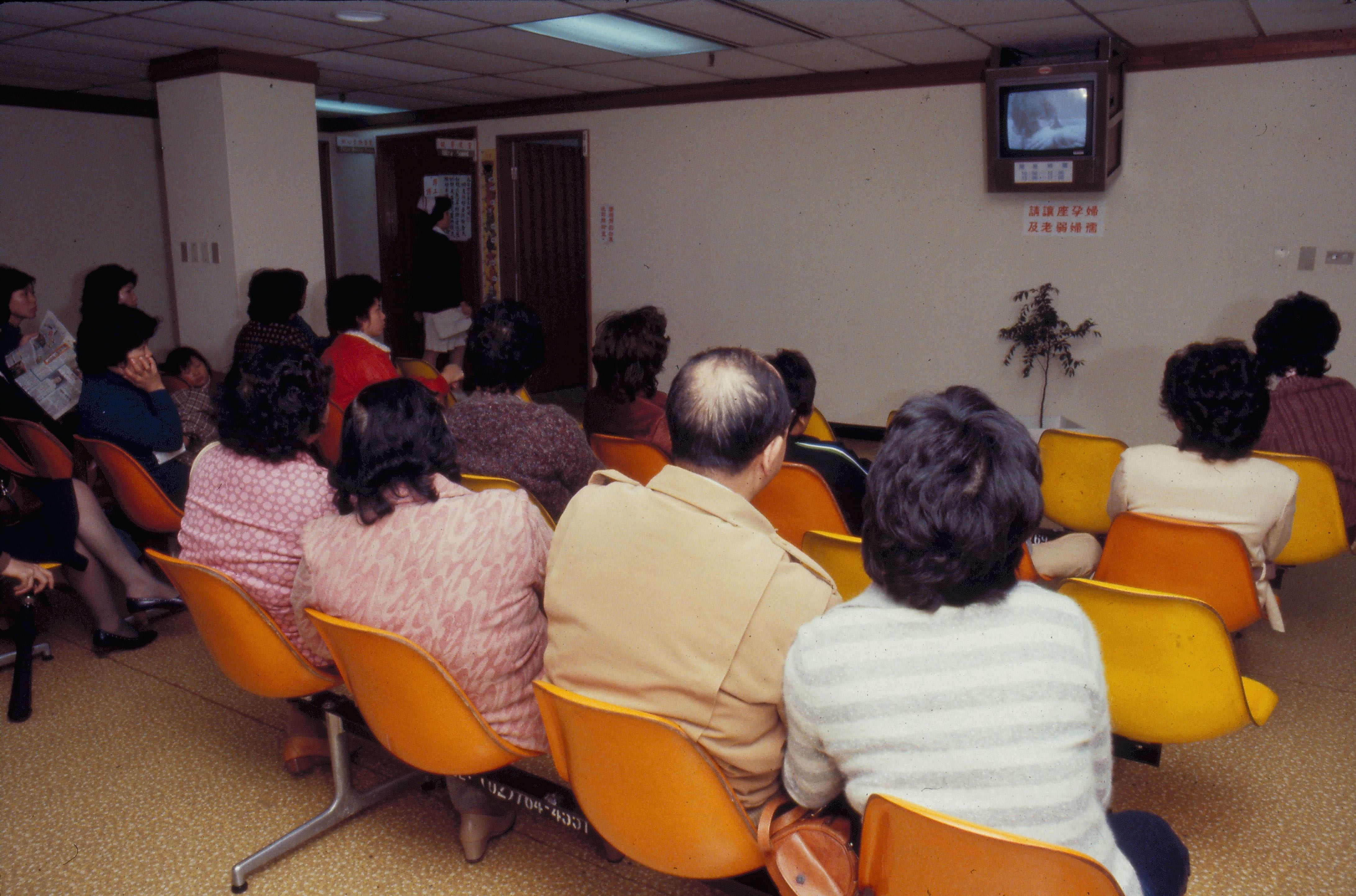 1. The book carts, manned by volunteer workers, visit the wards twice weekly. 2. The social service center volunteer workers, who are mostly college students, visit patients regularly. 3. Patients choosing spectacle frames at the optical clinic. 4. Dr. M. Samuel Noordhoff, former director of the Mackay Memorial Hospital, is now chief plastic surgeon at Chang Gung. 5. Chang Gung director Dr. Chang Chao-hsiung, a leading heart surgeon in Taiwan, has worked hard to raise the quality of service provided at Chang Gung. 6. Wang Chien-hsin, chief of the Director's Office, handles all the hospitals administrative affairs. 7. The video programs shown in the hospital's waiting rooms are usually on subjects relating to health and hygiene.